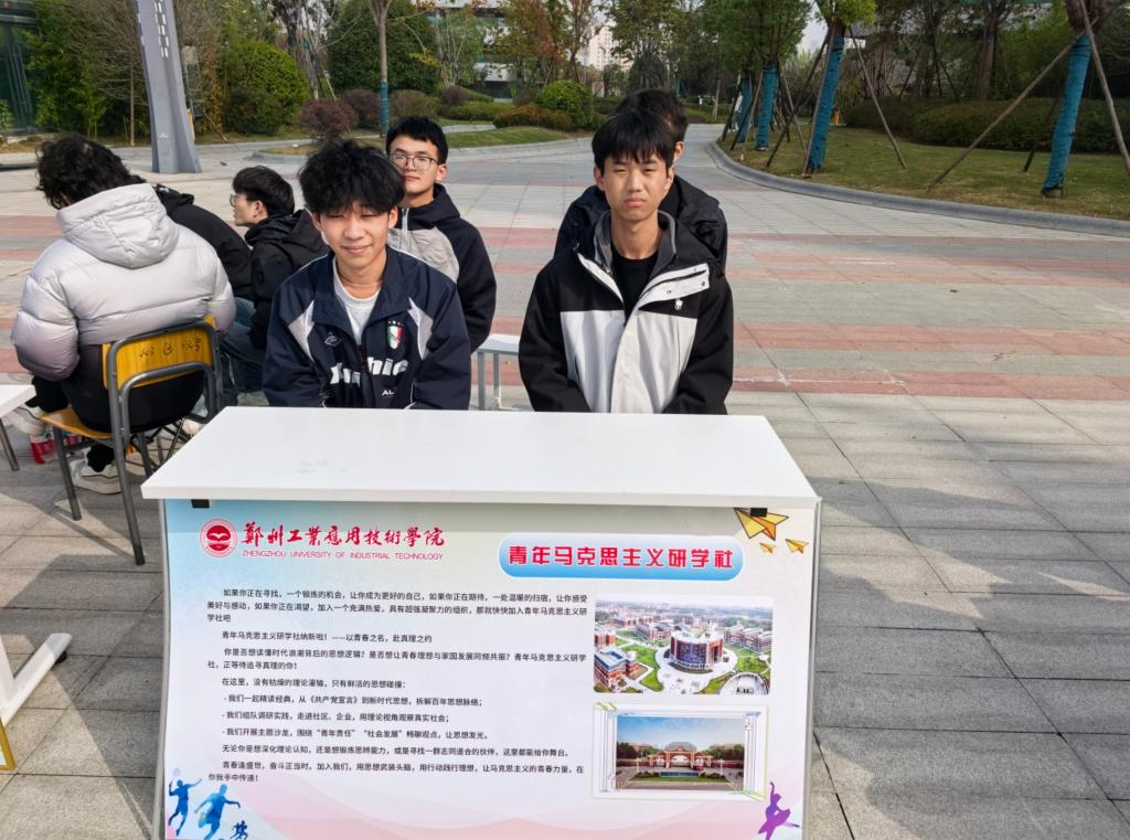 金秋送爽,思想激扬。2025年10月27日,郑州工业应用技术学院东校区社团嘉年华于双创园盛大启幕。青年马克思主义研学社以“传承红色基因,点亮青春信仰”为主题,通过知识竞答、互动宣讲等多元形式,为全校学子带来了一场沉浸式的马克思主义理论学习体验,成为嘉年华中一道独具思想深度的风景线。