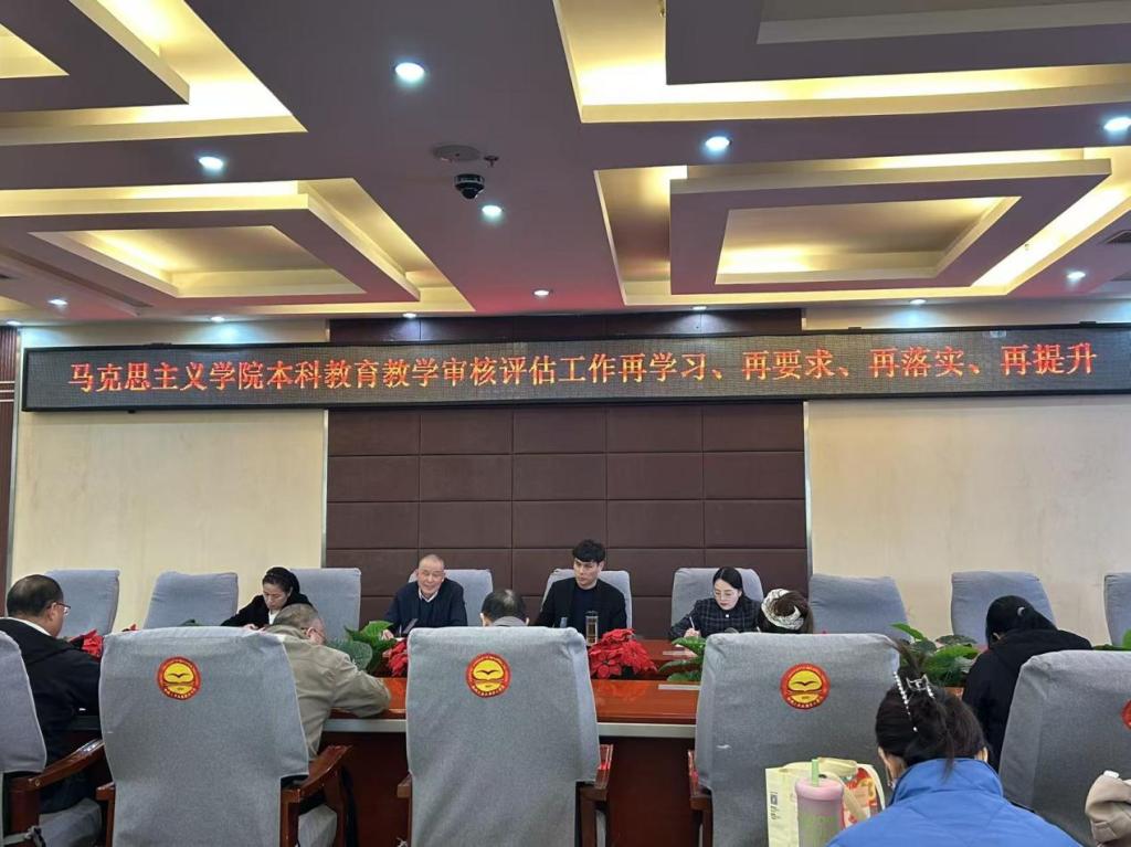 10月28日下午14时,马克思主义学院在行政管理中心二楼西会议室召开2025年本科教育教学审核评估工作推进会,会议围绕“再学习、再要求、再落实、再提升”的主题,对本科教育教学审核评估工作进行再次动员和部署,学院领导班子及全体教师参加,会议由办公室主任张营主持。