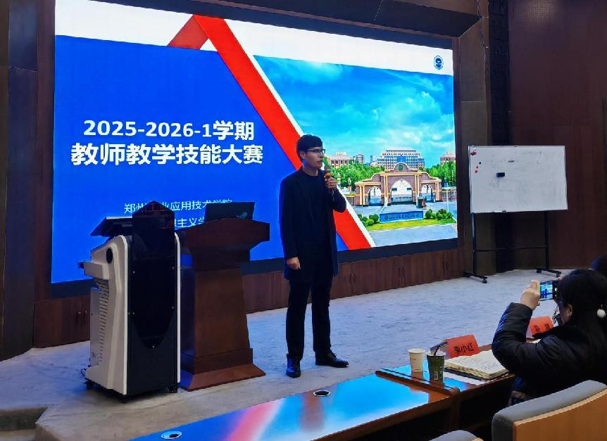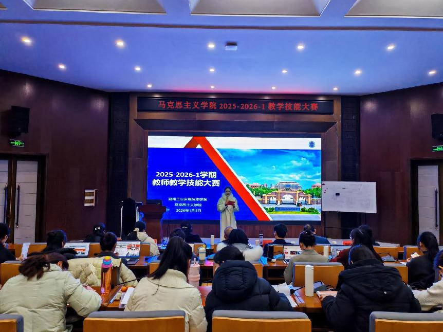 为推动思政课课堂教学改革,提高青年教师教学创新能力与课堂质量,引导教师潜心教书育人,打造教学改革的风向标,马克思主义学院于2026年1月5日在建工楼天健厅成功举办2025-2026学年第一学期教师教学技能大赛。本次活动由郑州工业应用技术学院党委宣传部主办,马克思主义学院承办。院长桂玉、教学科研副院长李健及马克思主义学院全体教职工出席本次活动。本次大赛评委团由李明教授、秦小星副教授、高婵副教授、段树瑾副教授、李小红主任组成。比赛由盖洁琼老师主持。