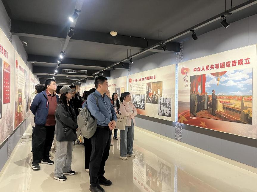 本次实践教学围绕廉政教育、红色文化、乡村振兴三大主题展开。师生们首先走进廉政长廊,在980米的主题街区中,通过“正气之源、渊远廉史、警钟长鸣”等板块,系统学习古今廉政思想与典型案例,在沉浸式场景中筑牢廉洁自律意识,深化对全面从严治党的理解。随后,师生一行参观红色博物馆,馆内丰富的革命文物、历史照片与雕塑,生动再现党的奋斗历程,让大家在历史回望中感悟初心使命、传承红色基因。在千稼集民俗文化区,师生实地感受民国风情与乡村民俗风貌,见证乡村文旅融合发展成果,深刻理解乡村振兴战略的实践伟力。